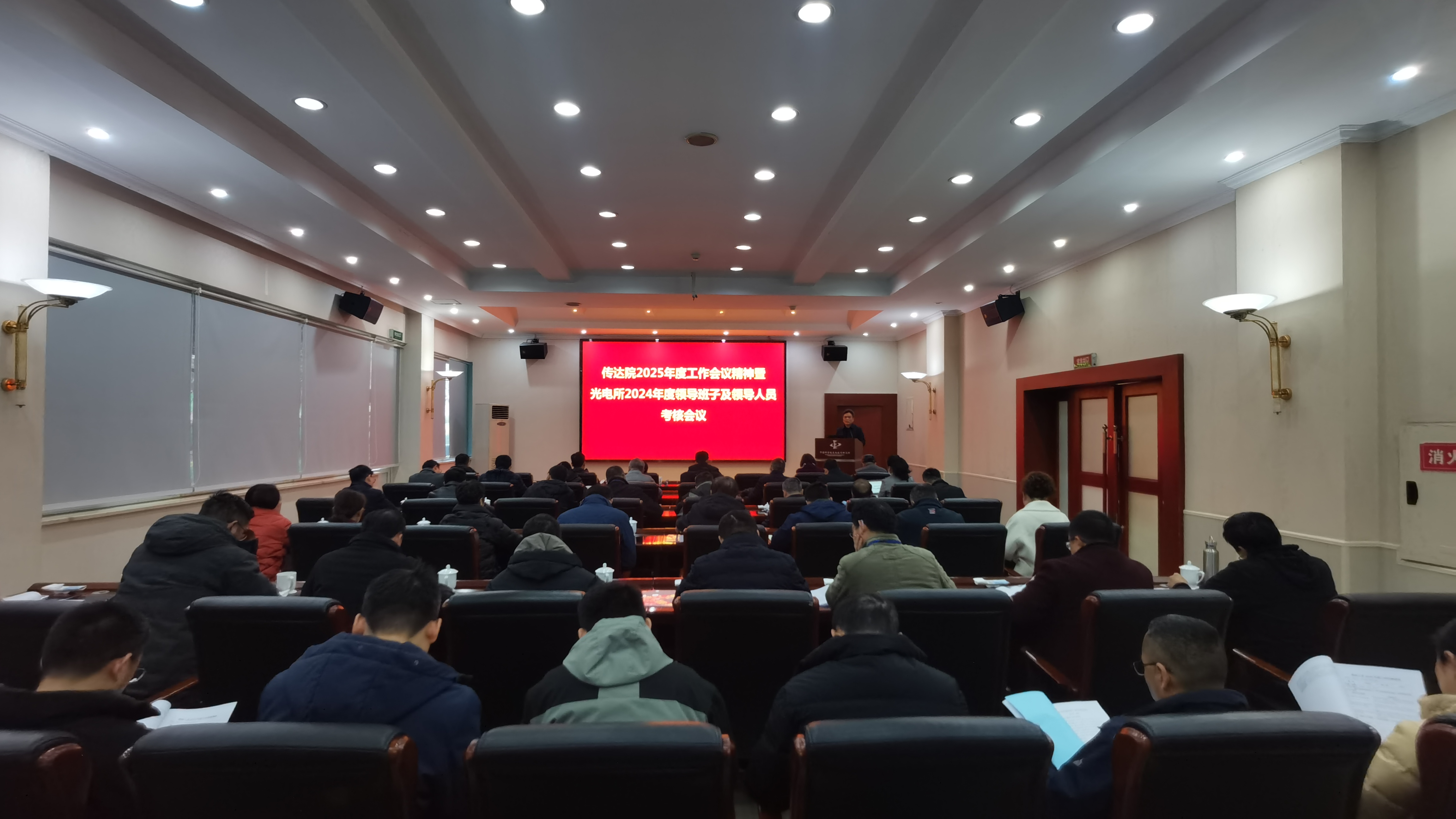光电所党委书记王嘉图传达了院长、党组书记侯建国所作《锐意改革进取 奋力攻坚克难 在抢占科技制高点新征程中迈出坚实步伐》工作报告主要内容,并结合研究所抢占科技制高点的战略目标,对2025年度工作会议报告作了深入解读分析,对会议精神进行深刻领会。