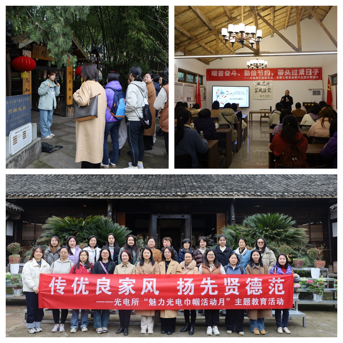 3月4日,光电所组织30余位女职工前往四川省家风家教创新实践基地、中国著名哲学家贺麟先生故居——金堂县五凤溪家风文化学院进行参观学习。活动中,大家认真聆听了贺麟先生的生平事迹,深刻感悟了他耕读传家的优良家风和浓厚的家国情怀。通过参观故居陈列的珍贵文物和历史资料,女职工们进一步增强了爱国情怀和使命担当。通过实地参观学习、家风讲堂,引导广大职工崇德向善、见贤思齐,让优良家风引领崇廉新风,凝聚向上向善的强大精神力量。