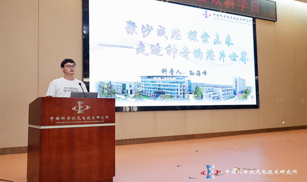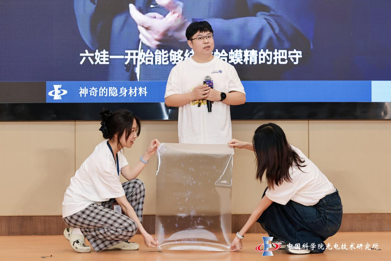 在科普讲座环节,光电技术研究所微电子装备总体实验室博士后孙海峰,光场调控科学技术全国重点实验室硕士研究生韩志强依次为大家带来《聚沙成芯 探索未来——走进神奇的芯片世界》《哈利·波特的魔法斗篷真的存在吗?》科普讲座,他们用通俗易懂的方式,为大家揭开了“芯片制造”和“隐形技术”的神秘面纱,展示了科学的魅力,点燃了大家对科学的热情!