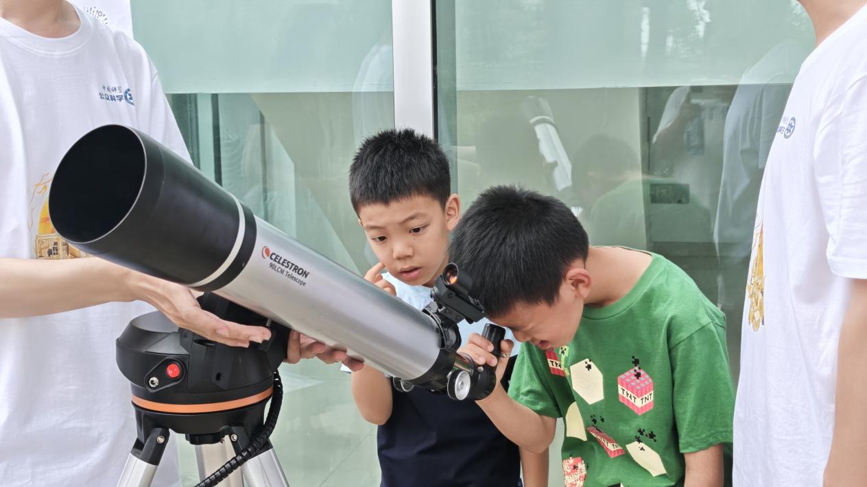 在参观太阳观测的“火眼金睛”环节,大家走进光电技术研究所科学城太阳望远镜展示区,参观1.8米自适应光学太阳望远镜,听志愿者现场讲解望远镜各个部件组成、工作原理,演示太阳望远镜对目标观测的工作过程,动手调试望远镜并通过望远镜观测远处目标,引领学生们走进浩瀚的宇宙世界,感受科学的魅力与神奇。