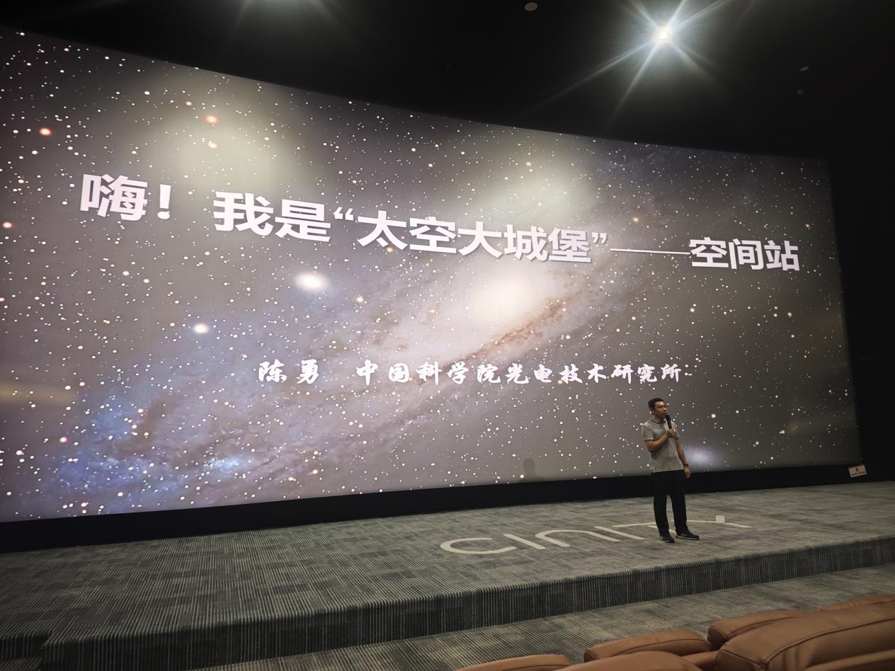在孩子们翘首以盼中,光电所陈勇老师化身"太空导游",以《嗨,我是“太空大城堡”——空间站》为题开启奇妙之旅。针对低龄儿童认知特点,创新采用"太空积木"教学法:将天和核心舱比作"客厅",问天实验舱喻为"实验室",货运飞船化作"快递小哥"。当大屏幕播放航天员在轨种植生菜、水膜养鱼的实景画面时,孩子们不约而同发出惊叹:"原来太空生活这么酷!"